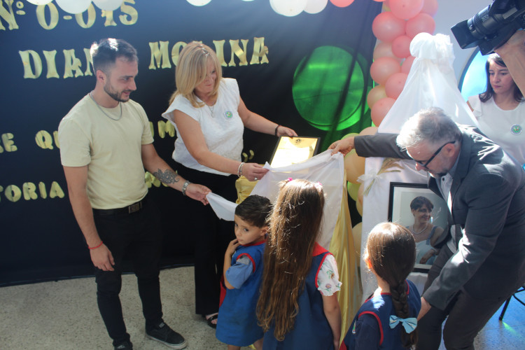 Acompañaron al intendente Raúl Rufeil, la directora de la escuela Liliana Abraham; el hijo de Diana Molina, Gian Franco; la diputada provincial, Claudia Salas, además de autoridades municipales y miembros de la comunidad educativa.
