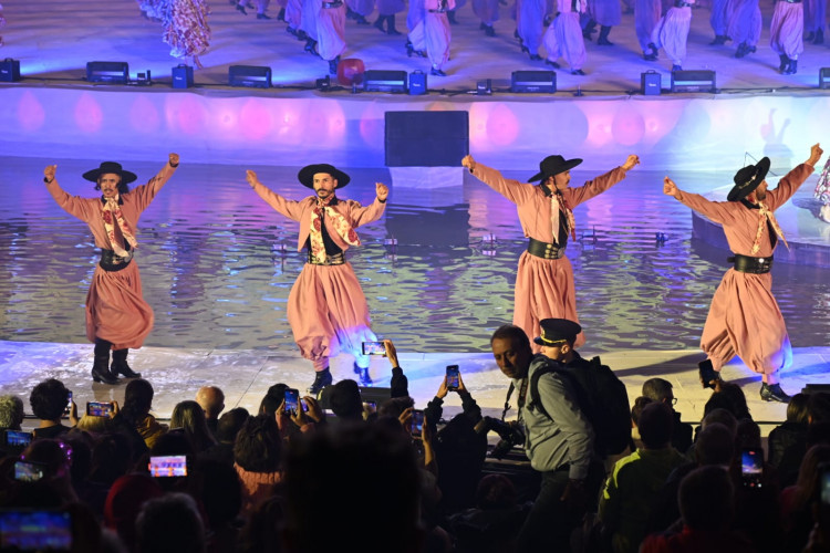 El espectáculo presentado en el teatro griego Frank Romero Day combinó música, danza, teatro y show de drones, en una propuesta que recuperó distintos momentos de la historia vendimial y de la identidad cuyana.